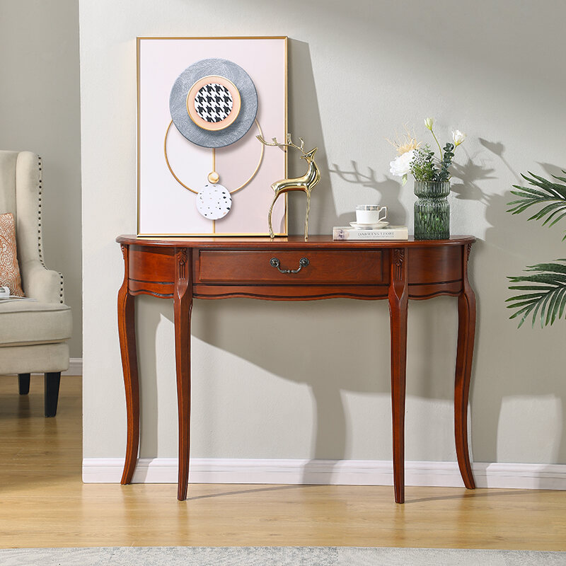 Household Solid Wood Entrance Cabinet American Light Luxury Semicircle Wall Console European Console Tables Partition Hallway Curio Cabinet