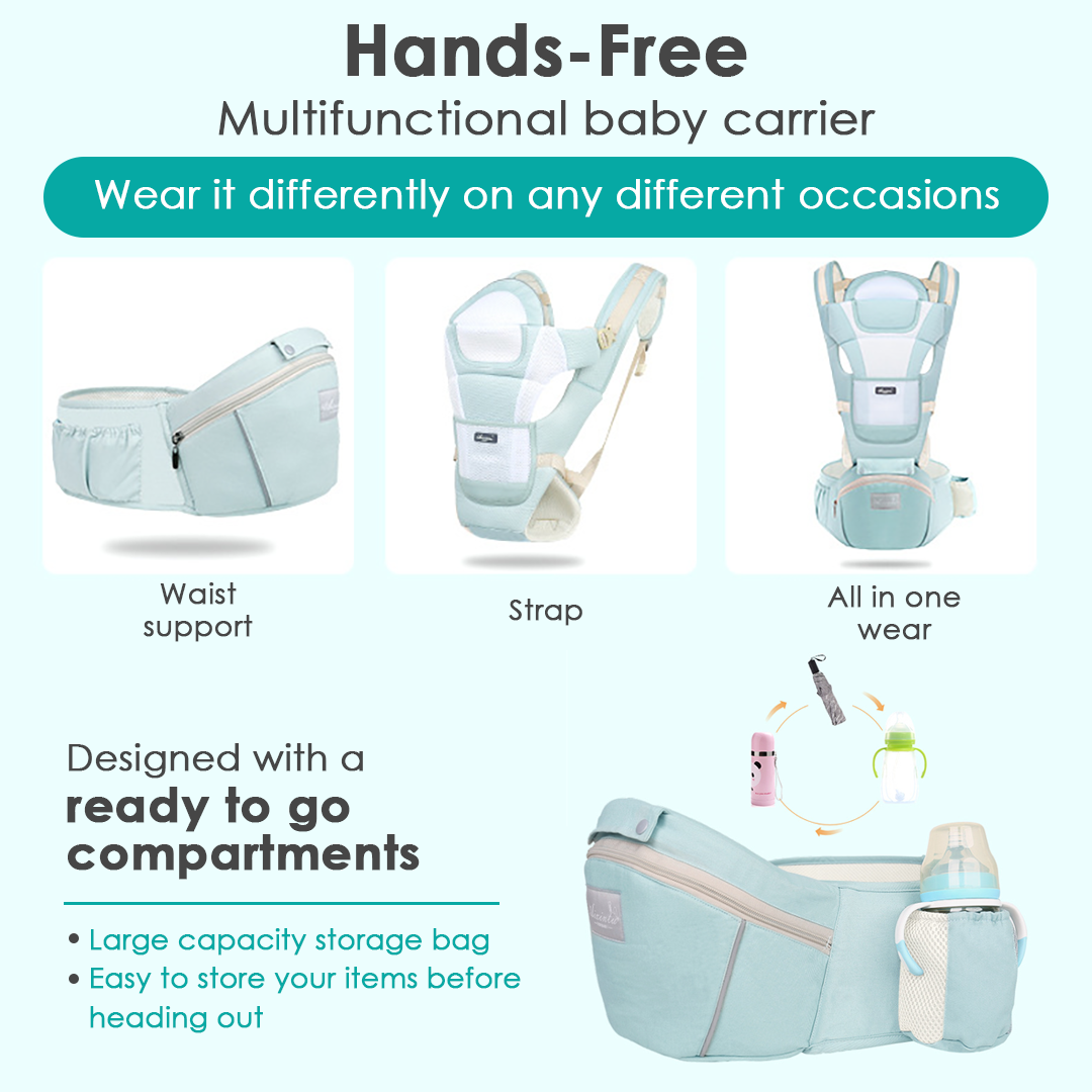 Multi-Function Baby Carrier With Hip Seat | Breathable Adjustable Newborn Carrier | Baby Sling Carrier | 360 All Positions Baby Carrier | Mumchecked