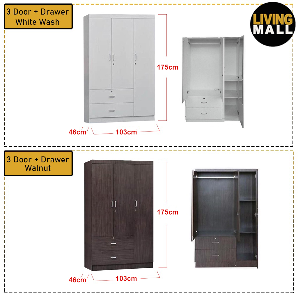 3 Door + Drawer Walnut - L 103. x D 46. x H 175 cm
