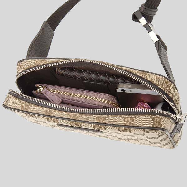 GUCCI Signature GG Canvas Unisex Waist Belt Bag Beige 449174
