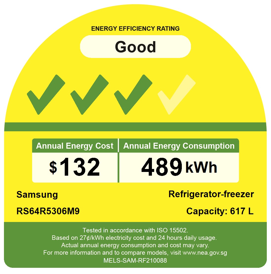 Samsung RS64R5306M9/SS, Side-by-side Refrigerator, 617L, 3 Ticks