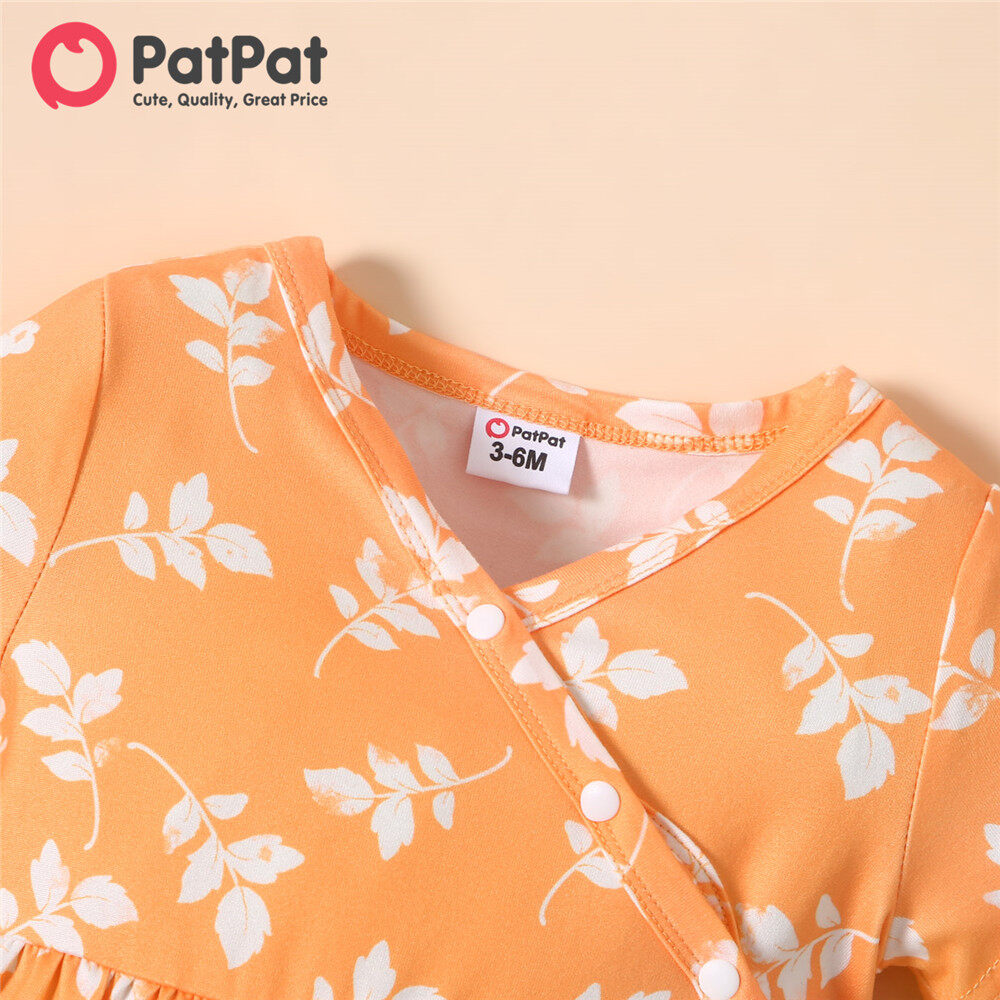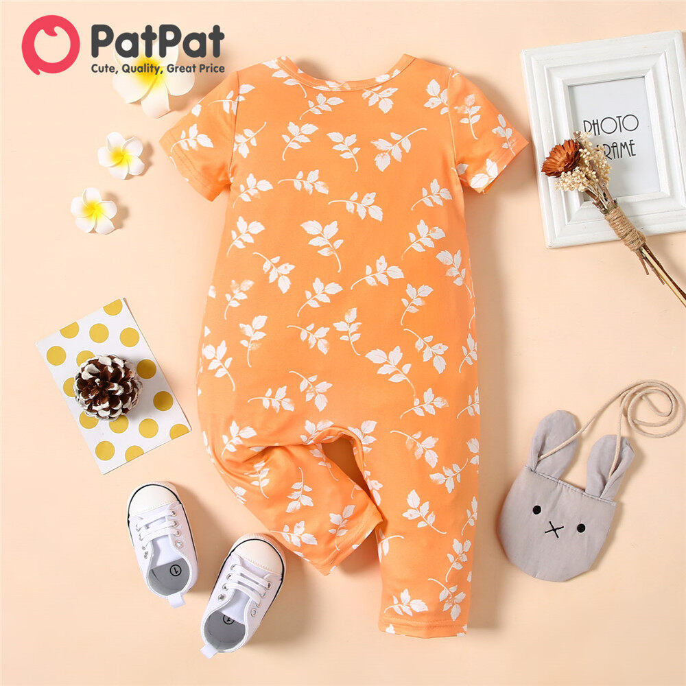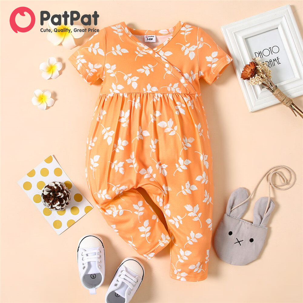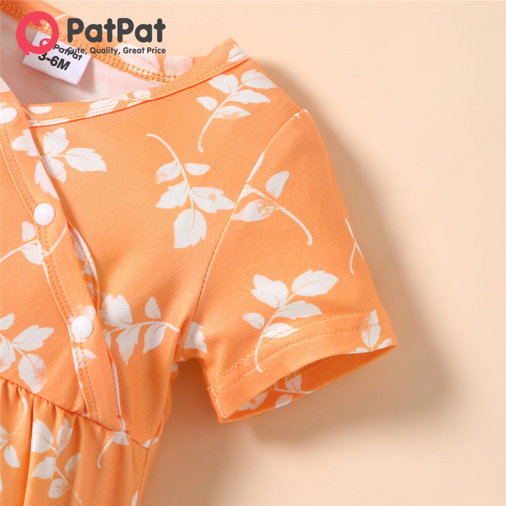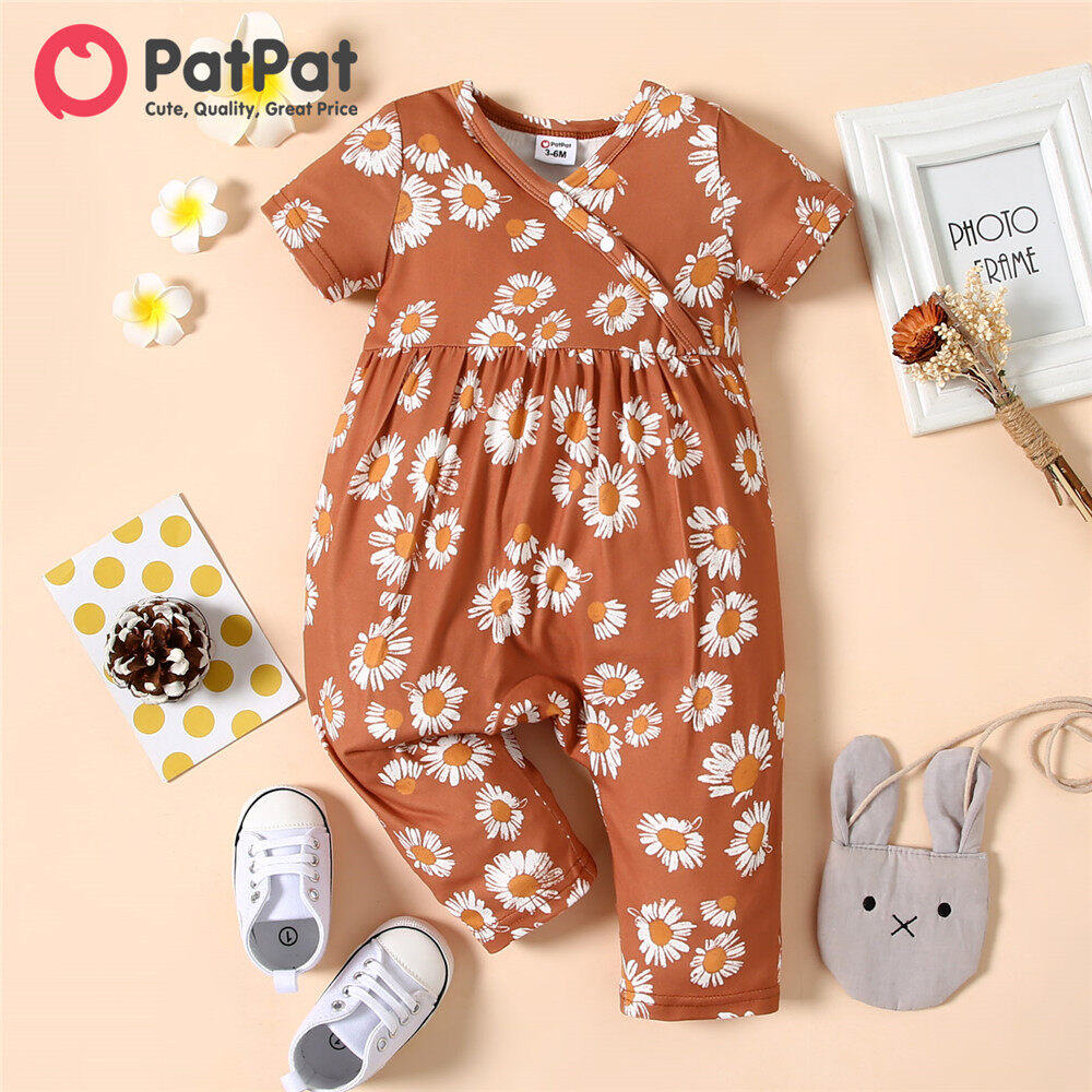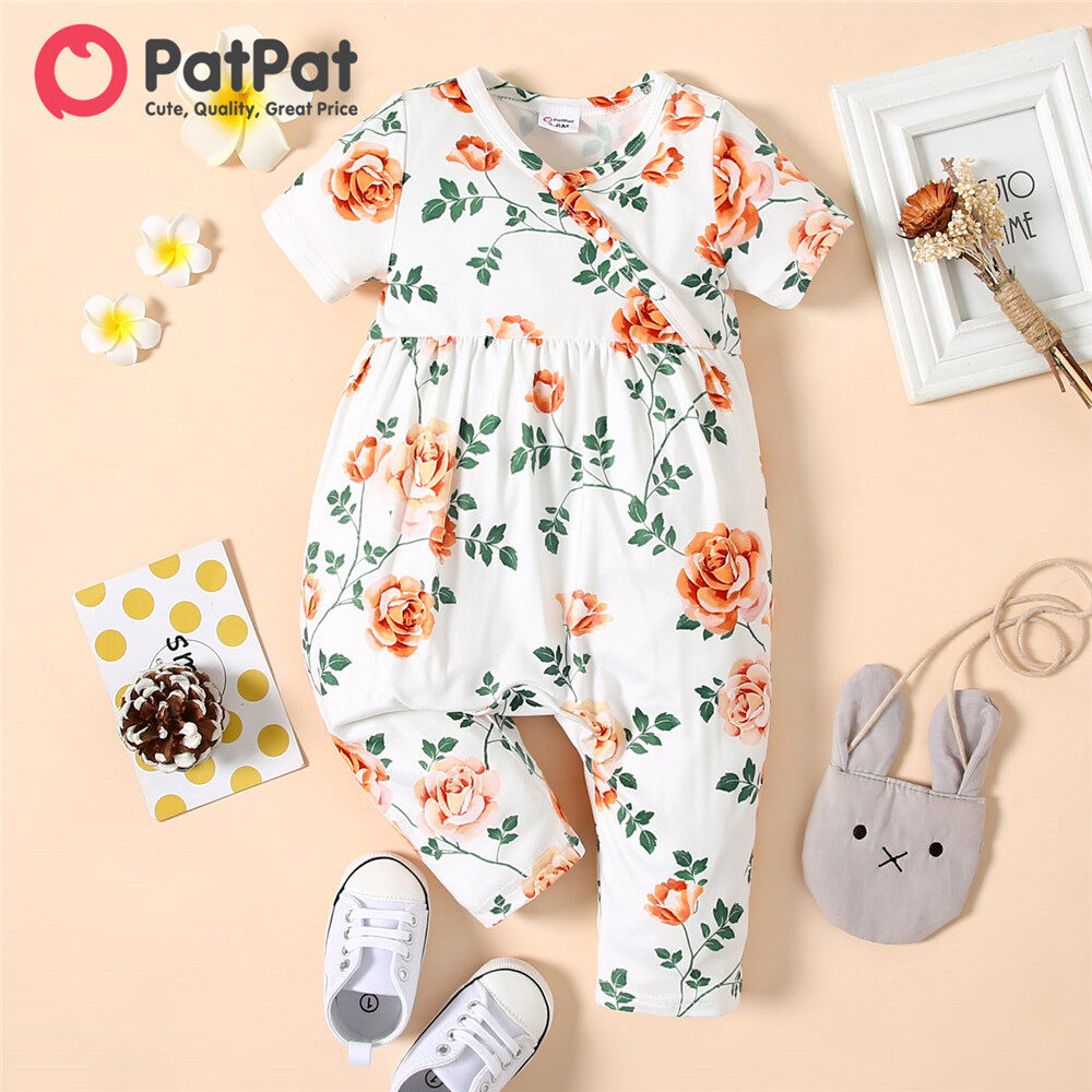 PatPat Baby Girl Clothes All Over Floral Print V Neck Short-sleeve Snap-up Jumpsuit