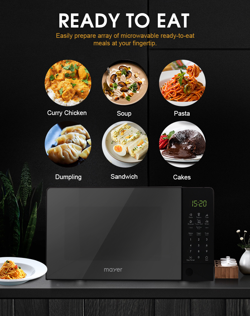 Mayer 20L Microwave Oven MMMW20 / LED Digital Screen/ 6 Preset/ 100 Minutes Timer/ Child-lock/ Push Button Door