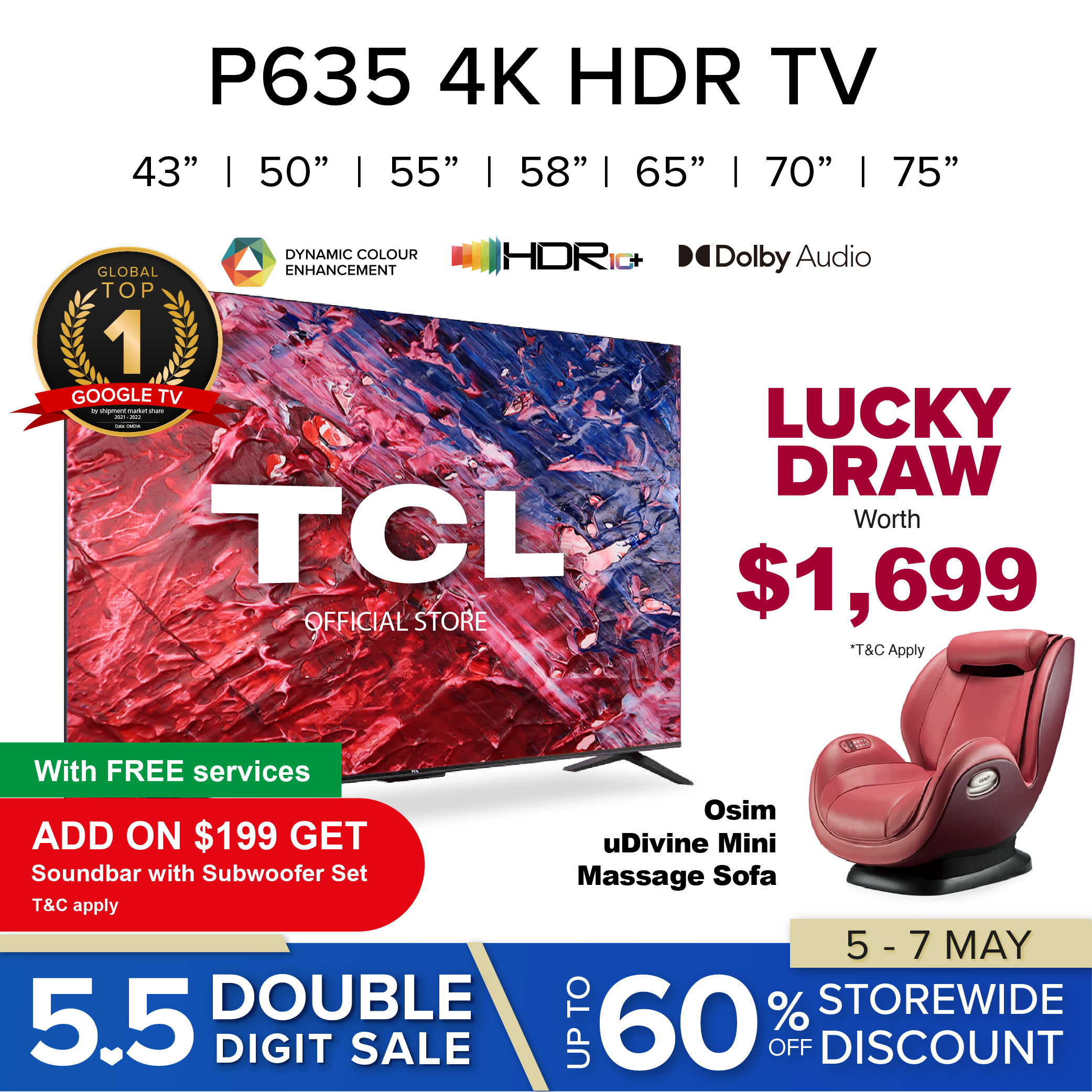 TCL 4K TV P635 Google TV Android TV | 43 50 55 58 65 70 75 inch | Dolby Audio | HDR 10 | HDMI 2.1 | Edgeless Design | Dolby Audio | Voice Control