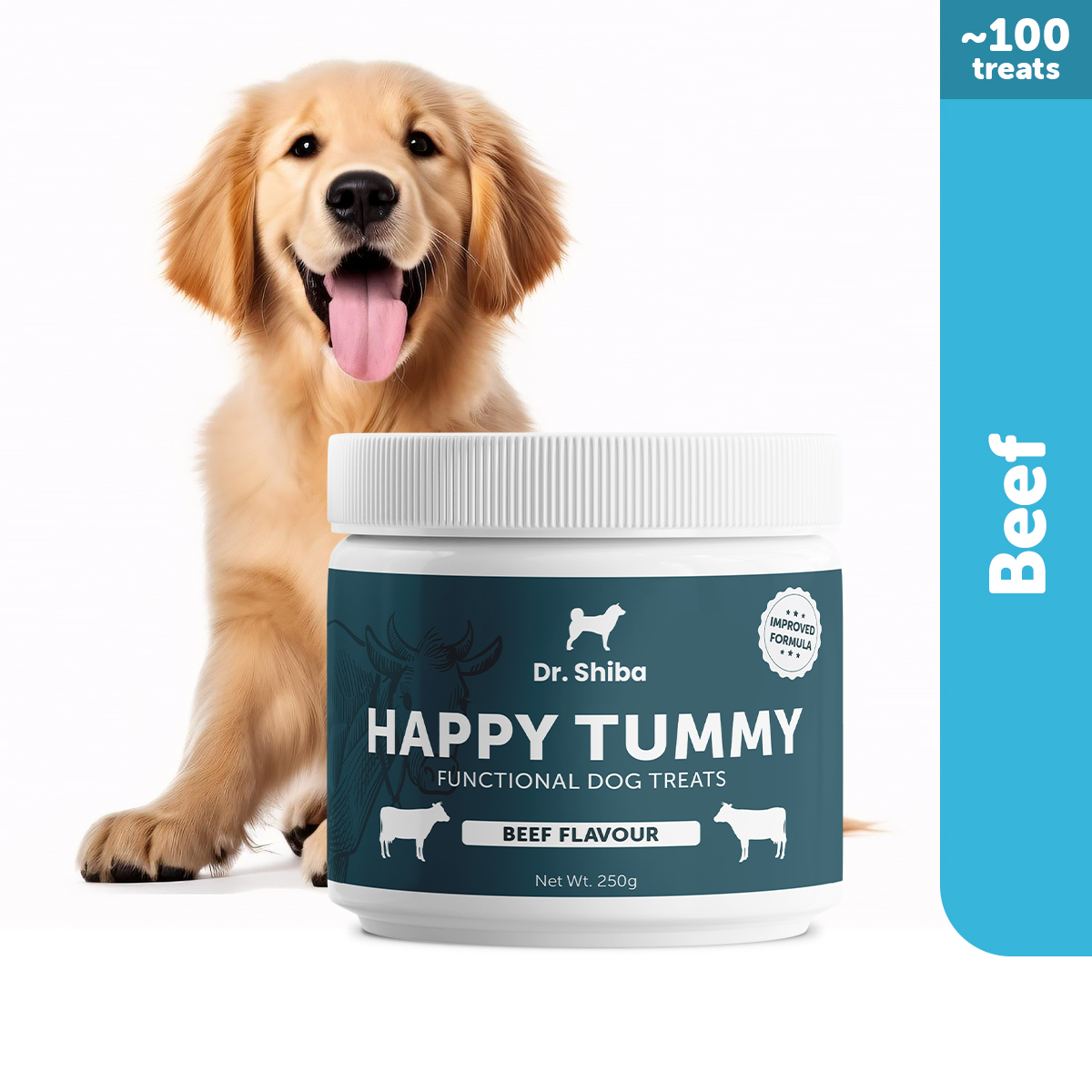 ✅ Are Happy Tummy treats considered dog essentials? If your dog frequently suffers from upset tummies or has irregular bowel movements, then yes! Happy Tummy dog supplement treats help with digestion, resulting in a more comfortable, happier pup.