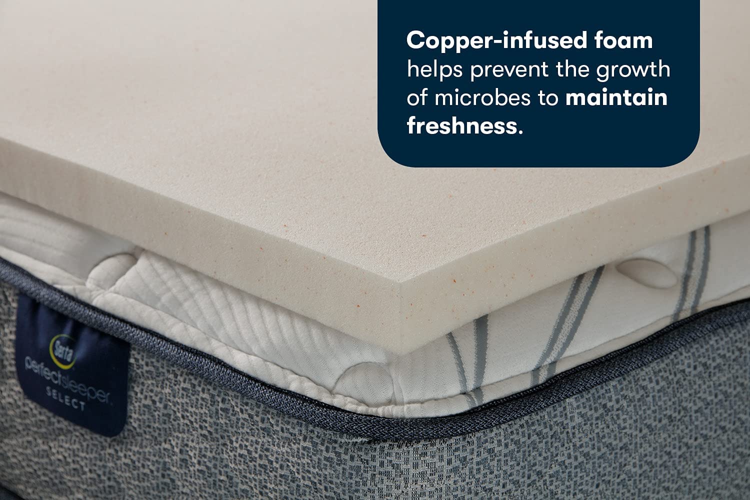 • Naturally clean, copper-infused foam helps prevent the growth of microbes to maintain freshness