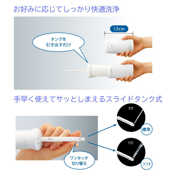 • Easy one-touch switching between different cleaning methods. Easy one-touch changeover for different washing methods: normal 3-hole discharge or soft 5-hole discharge for those who prefer a softer wash.