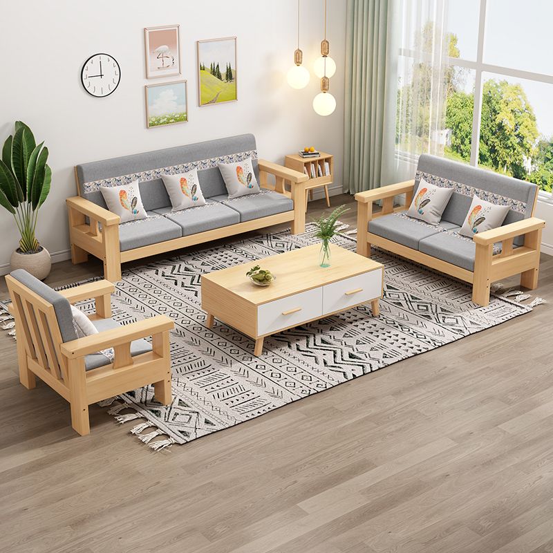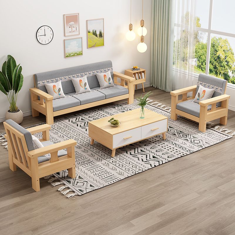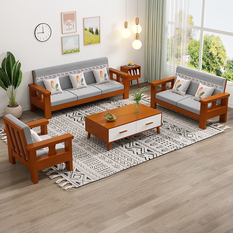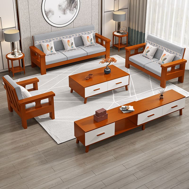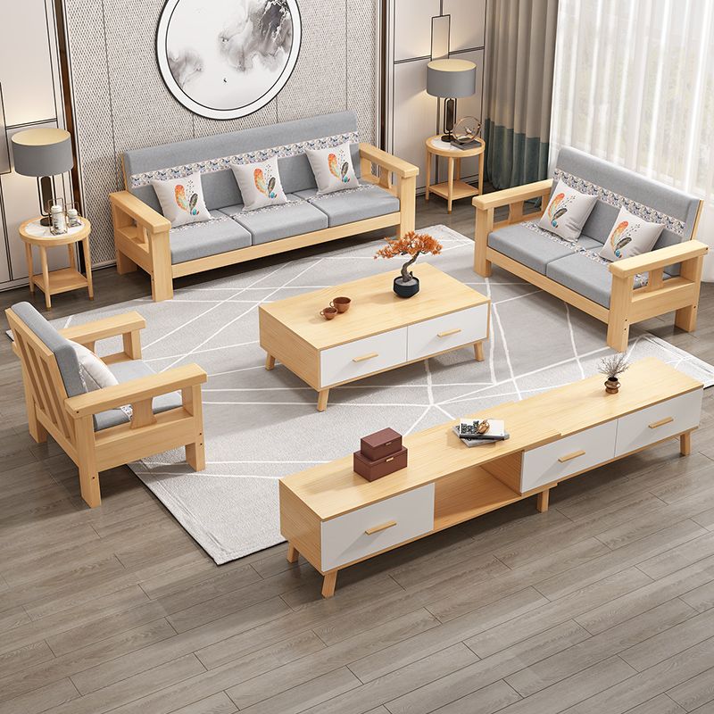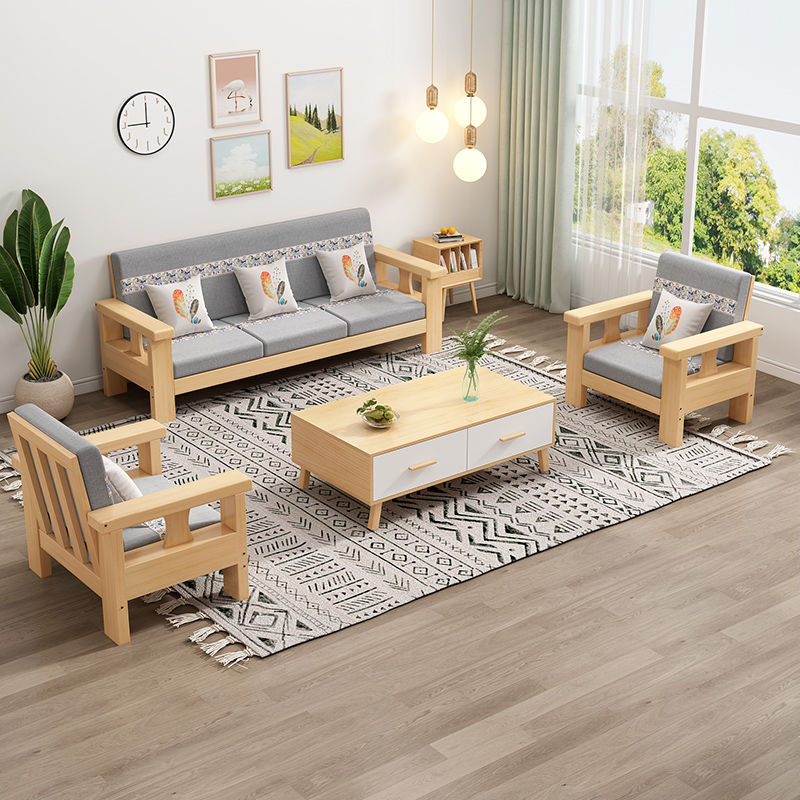 Solid Wood Sofa Simple Single Double Three Four-Seat Sofa 23 New Coffee Table TV Cabinet Sofa Combination
