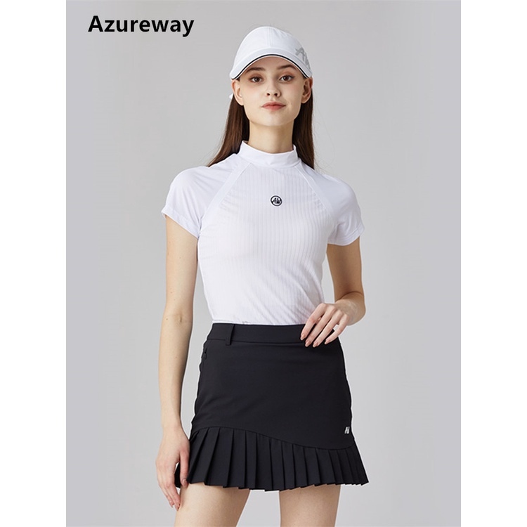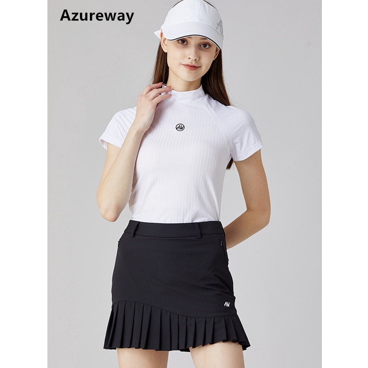 Azureway GOLF round neck short-sleeved T-shirt women's top hip-covered skirt pleated women's skirt GOLF Sports ball suit women's 7WNF