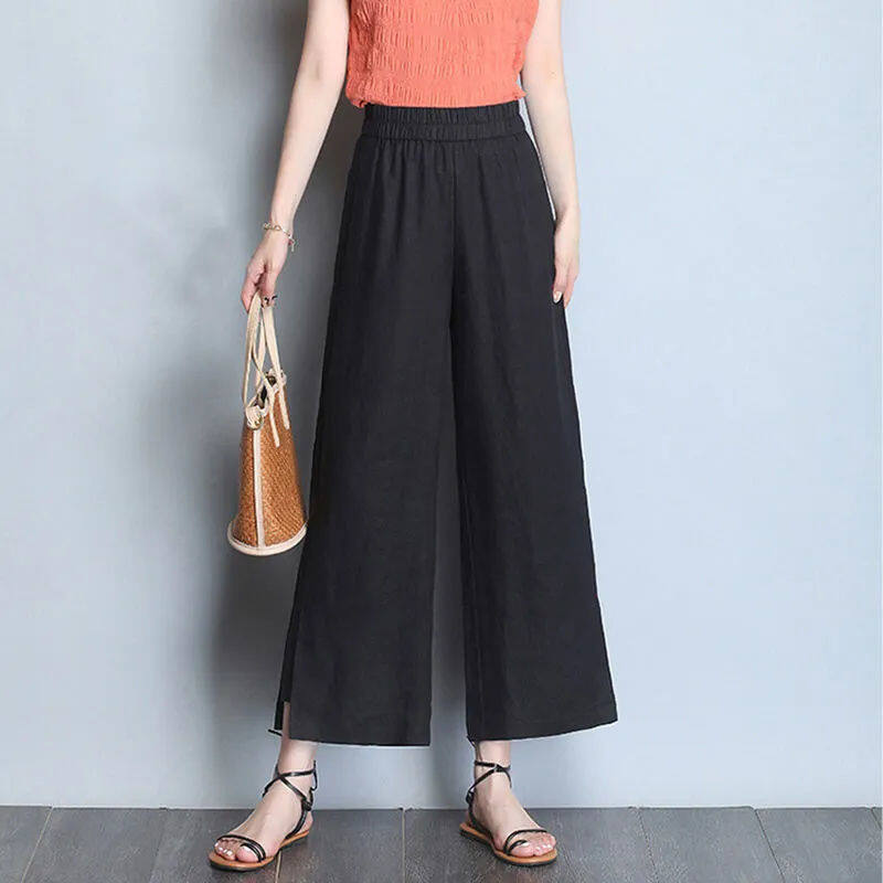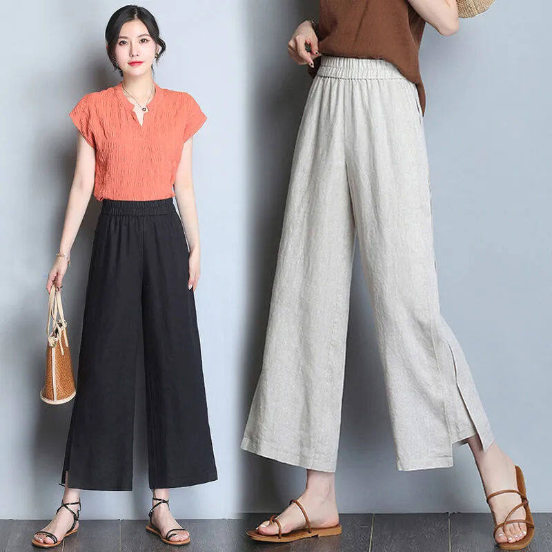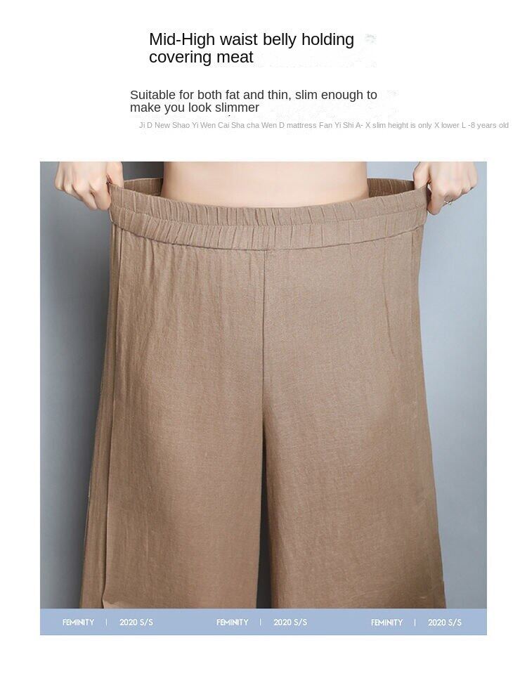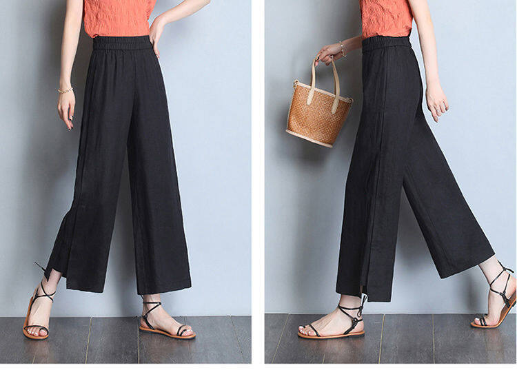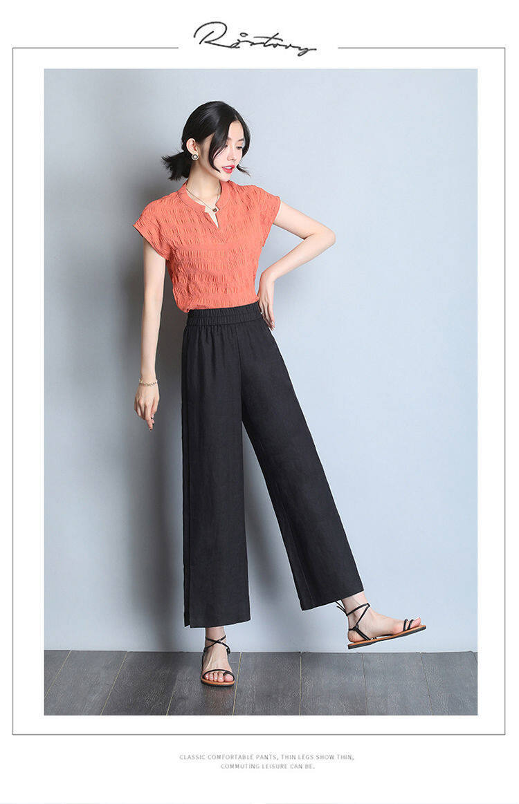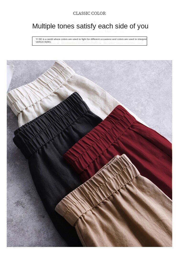 Wide leg pantsHigh waistedCotton and hempNinth pantsSimplified Commuting/Korean Version