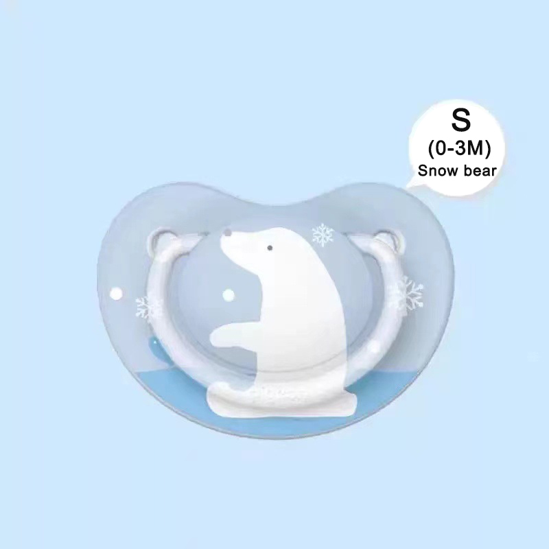 Flat, drop-shaped symmetrical nipples respect the natural development of your baby's palate, teeth and gums, even if the pacifier ends upside-down in the mouth.