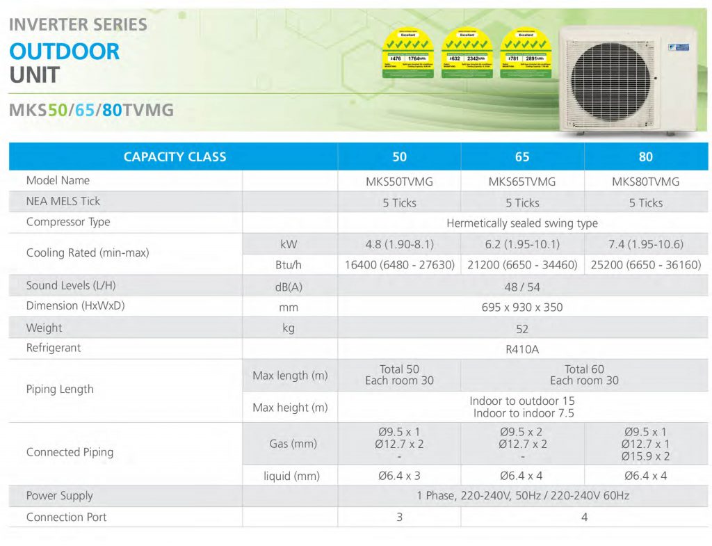 DAIKIN AIR CONDITIONER R32 I-SMILE MULTI-SPLIT INVERTER SYSTEM 3 [MKM50VVMG x 1 & CTKM25VVMG x 3] + FREE 60 MONTH WARRANTY + FREE Delivery + FREE Consultation Service