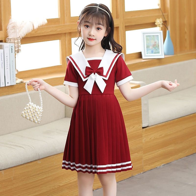 ♀☄ Angugu kids navy neck dress girls short sleeve dress summer Lolita princess dress JK college style little girl skirt 2 to 12 years old teen girl