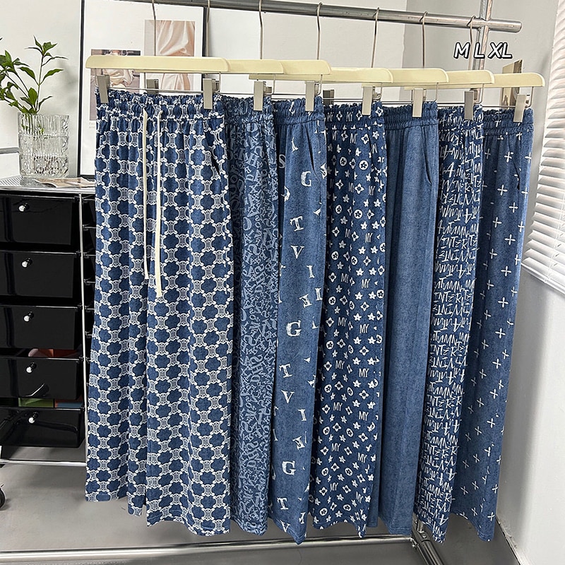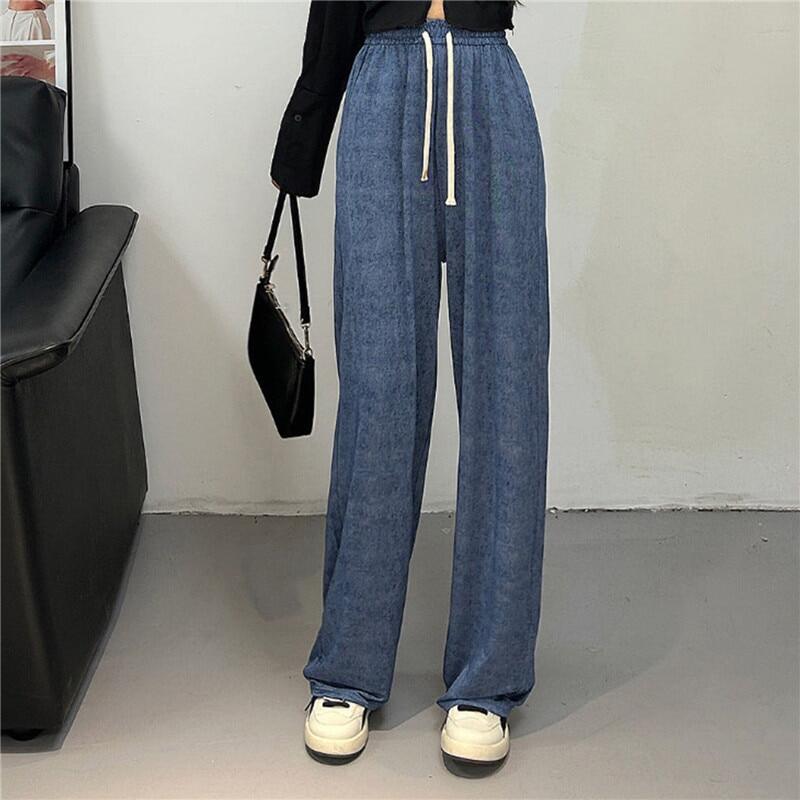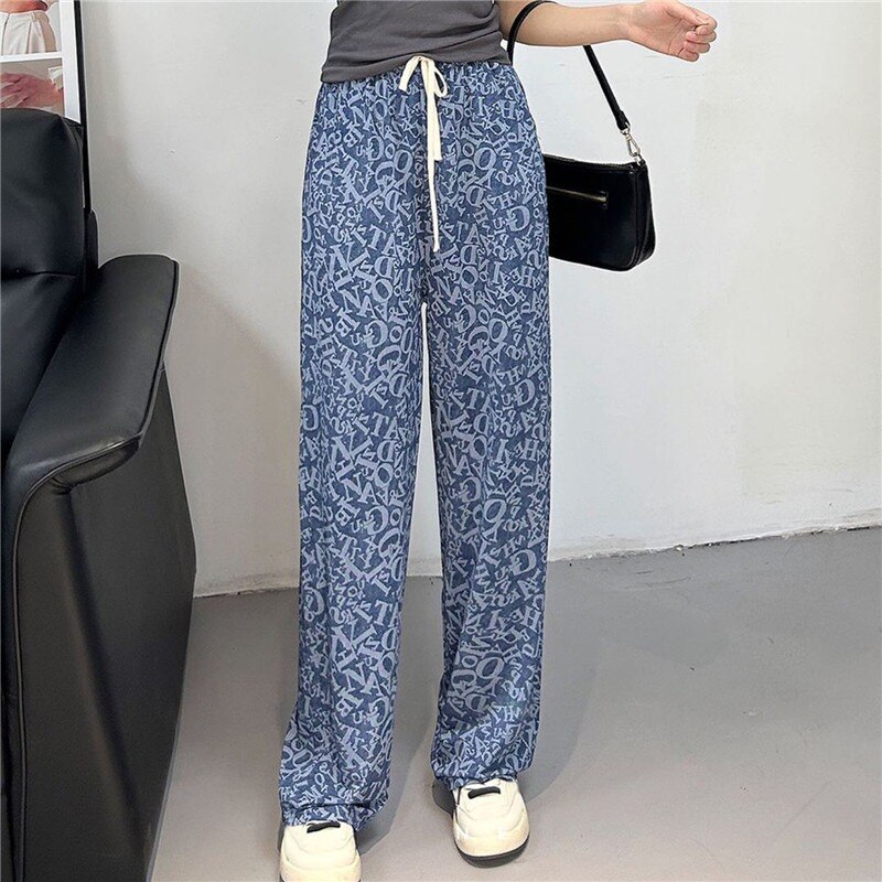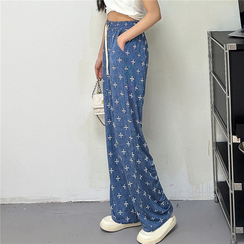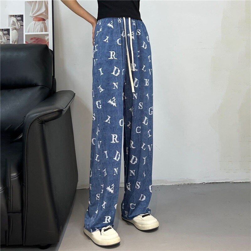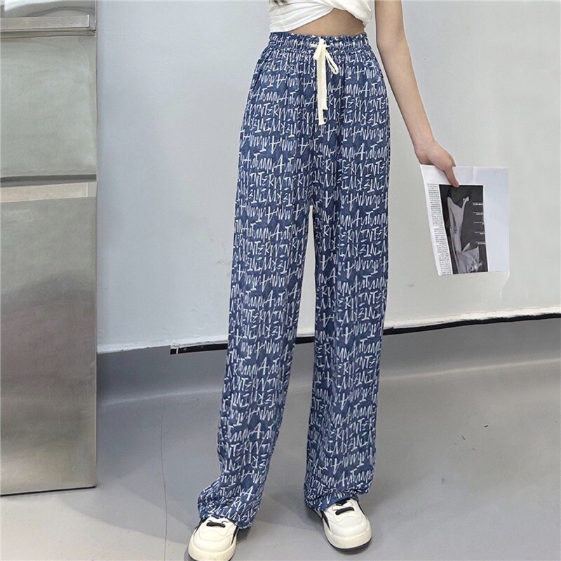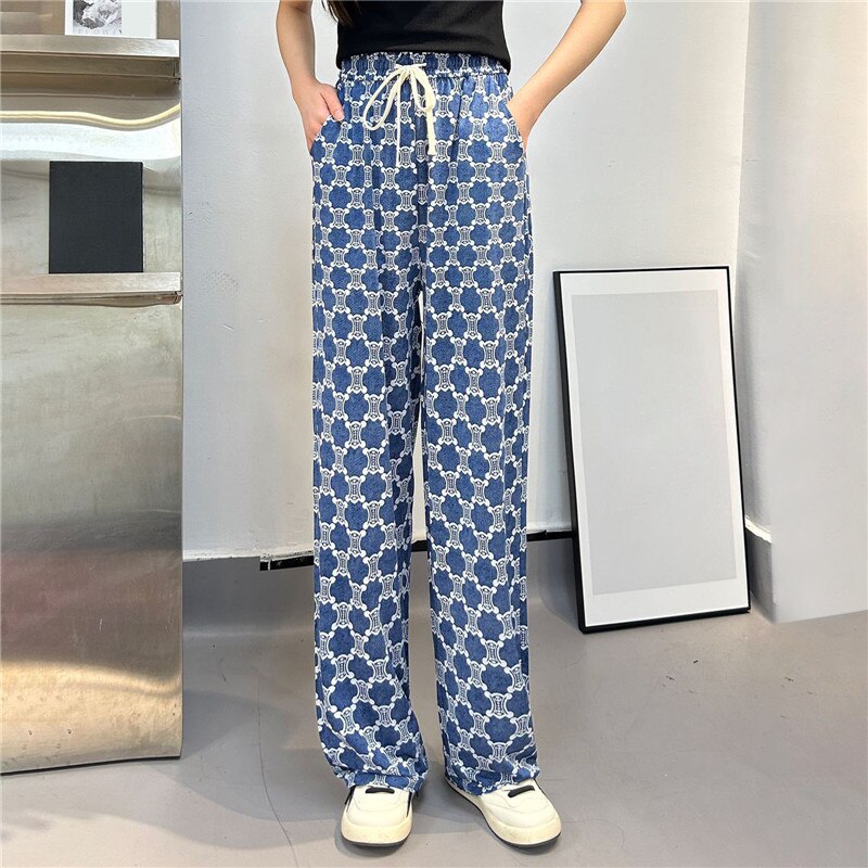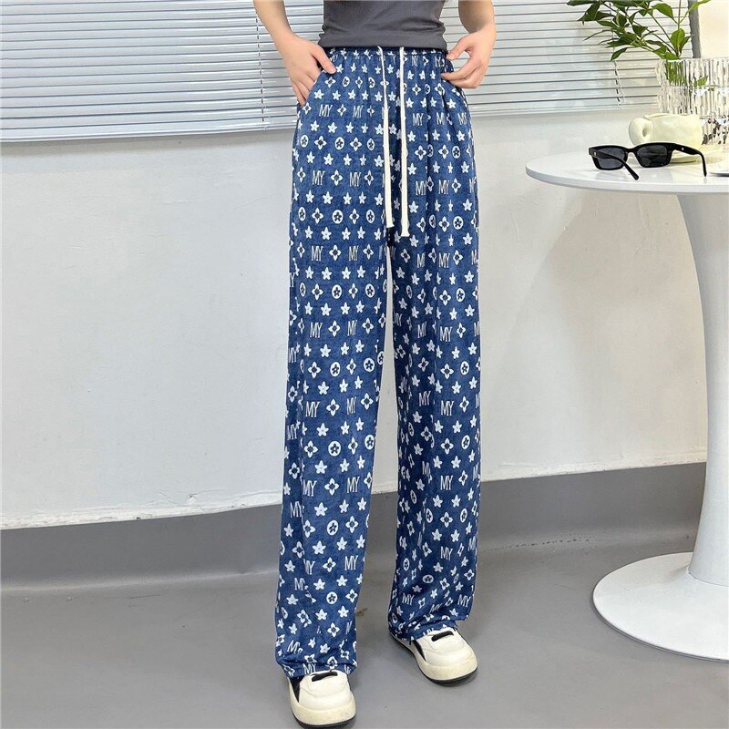 2023 Print Ice Silk Wide Leg Pants Women High Waisted Trousers Women Casual Baggy Pants Woman Fashion Summer Women's Pants