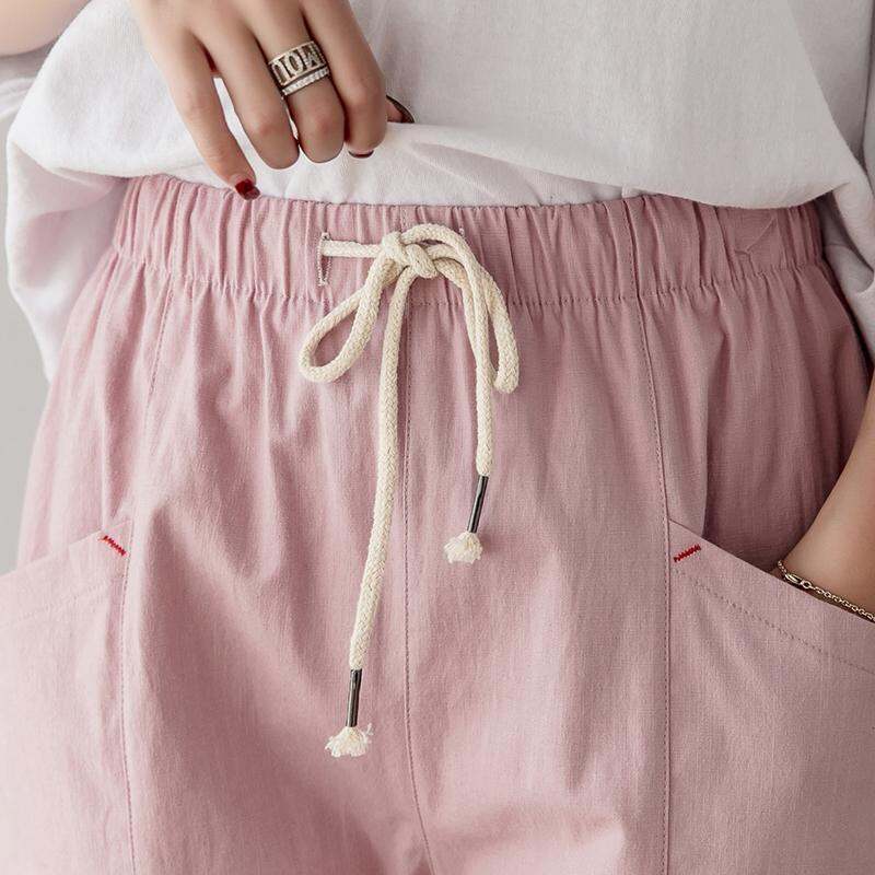 Summer Women's Cotton Linen Harem Pants Loose Student Capri Pants Casual Women's Pants Young Adult Solid Color Pocket Thin Baggy Pants
