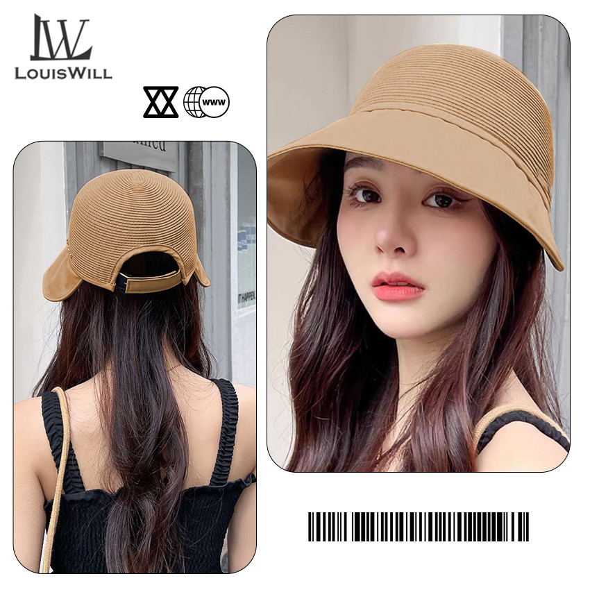 LouisWill Women Sun Cap Women's Beach Hat Sun Visor Hat Casual Knitted Sun Hats Portable Beach Cap Large Brim Cap Sun Protection Cap UV Protection Straw Hats for Summer Outdoor Travel