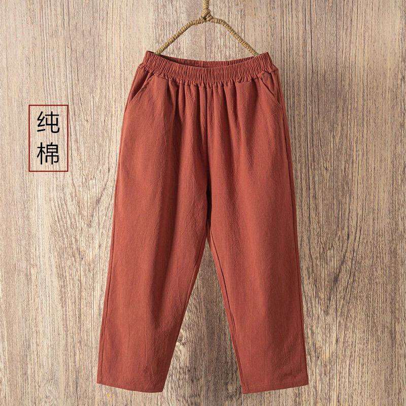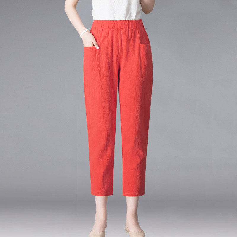 Thin 2024hc Pants Straight-leg Middle-Aged and Elderly White Waist Summer Women's Pants Harem Cotton Linen Loose Ladieswear Break Trousers with an Elasticated Waist