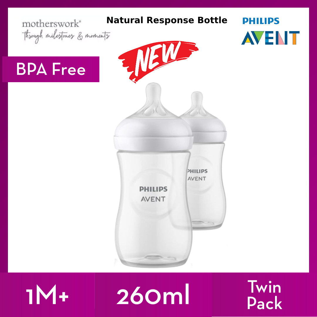 [3 Sizes] Philips Avent Baby Response Natural Bottle With Teats 125ml / 260ml / 330ml Single / Twin Pack - 0M+