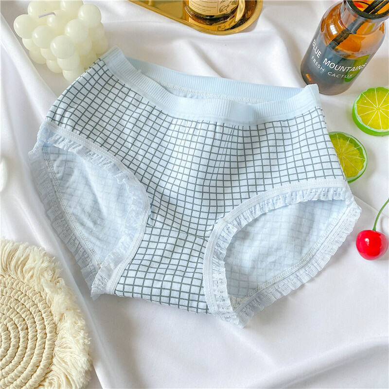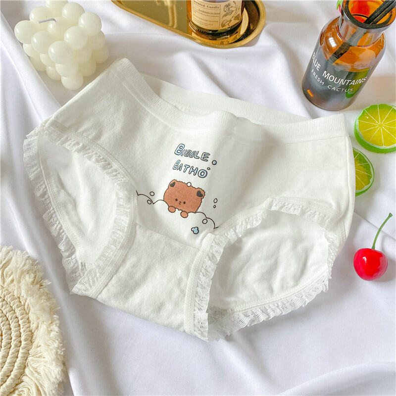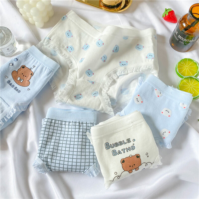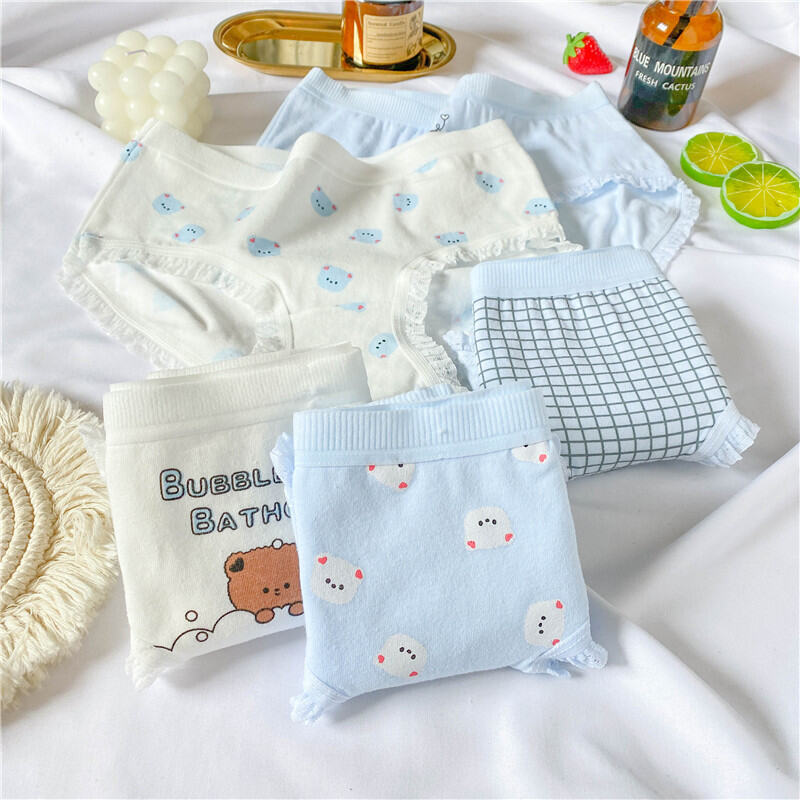 Cute Bear Minimalist Adorable Young Adult Underwear Mid Waist Classic Cotton Crotch Blue and White Students Triangle Shorts Breathable