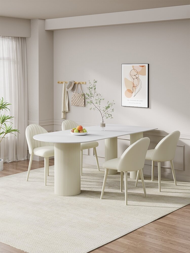 Cream Style High end French style Island Table Oval Pure White Rock Plate Dining Table Light Luxury Dining Table Home Simple