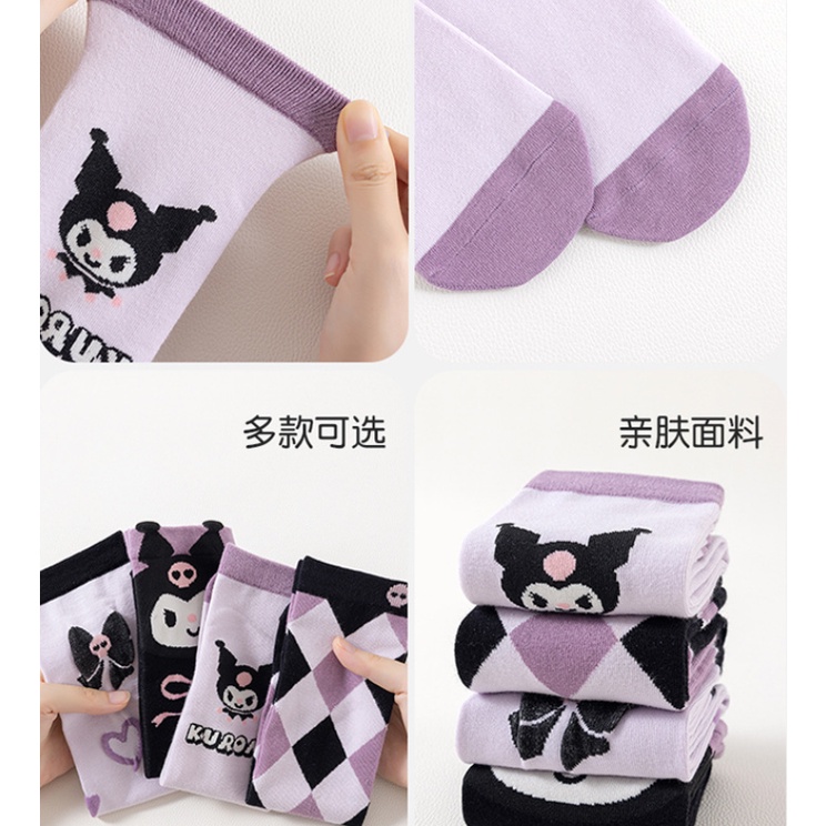 Girls Socks Cartoon Kuromi Children's Mid-Tube Socks Japanese All-Match Stockings Cotton Socks Gifts