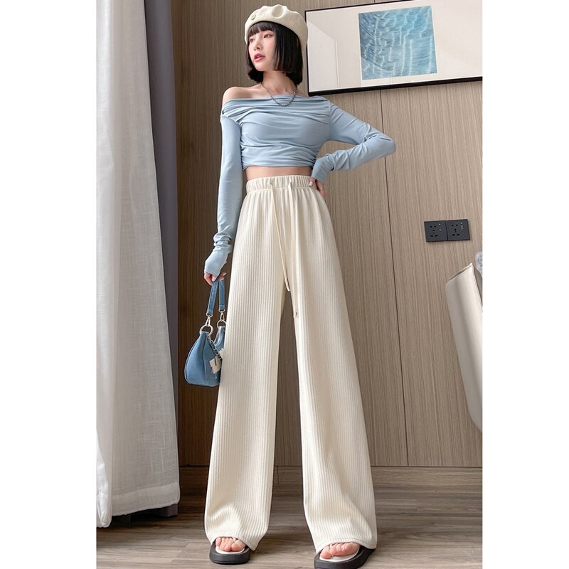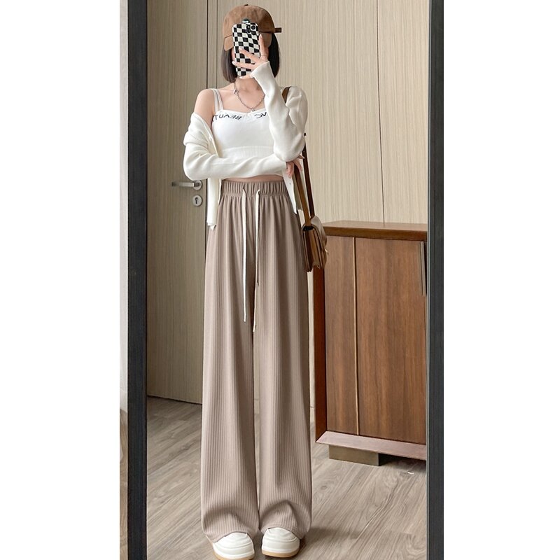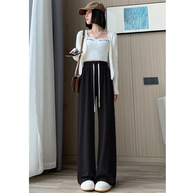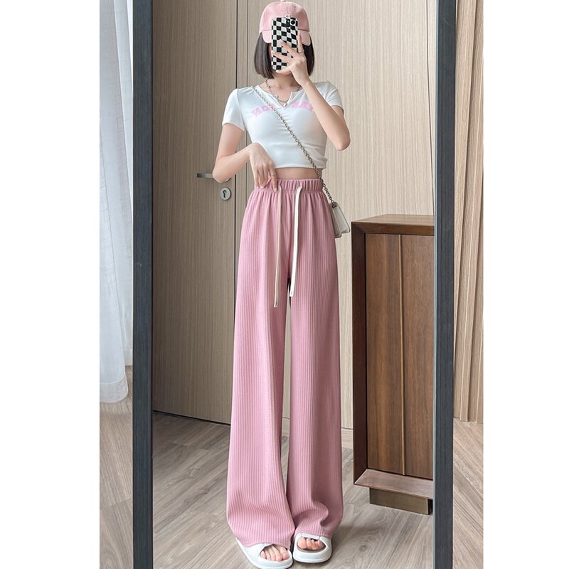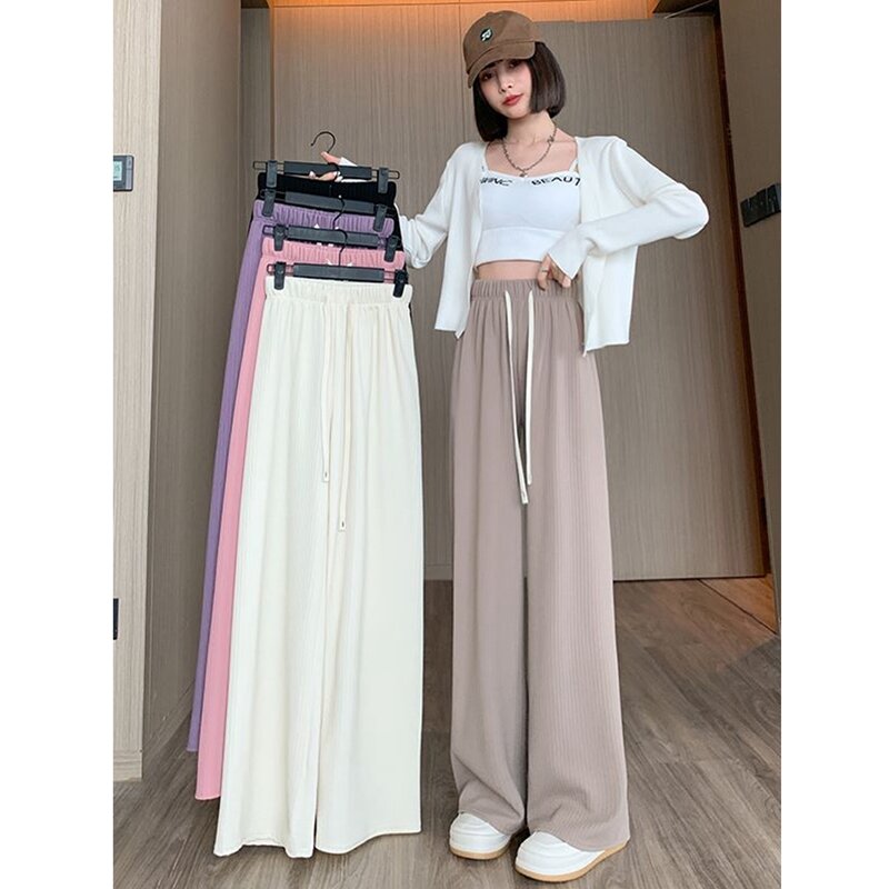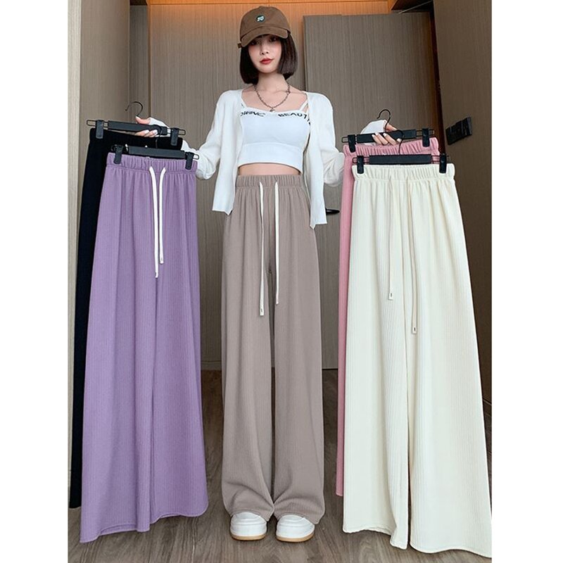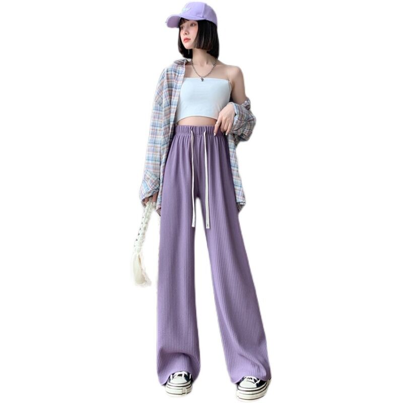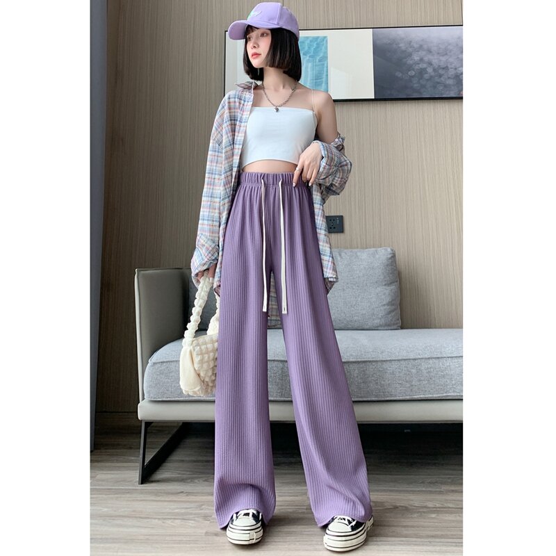 Purple Ice Silk Wide-Leg Pants Women's Summer High Waist Loose Drooping Slimming and Straight Casual Narrow Pants Mop Pants