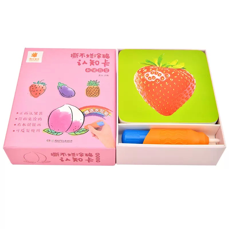 Our reusable water coloring flash card is a durable and eco-friendly, designed to provide hours of fun for your curious little ones! These cards features both realistic and cartoon designs. The cartoon side is coated with a safe membrane and can be coloured with water. The colours will disappear as the water on the surface dries. This reusable feature allows your little ones to play with the cards over and over again!
