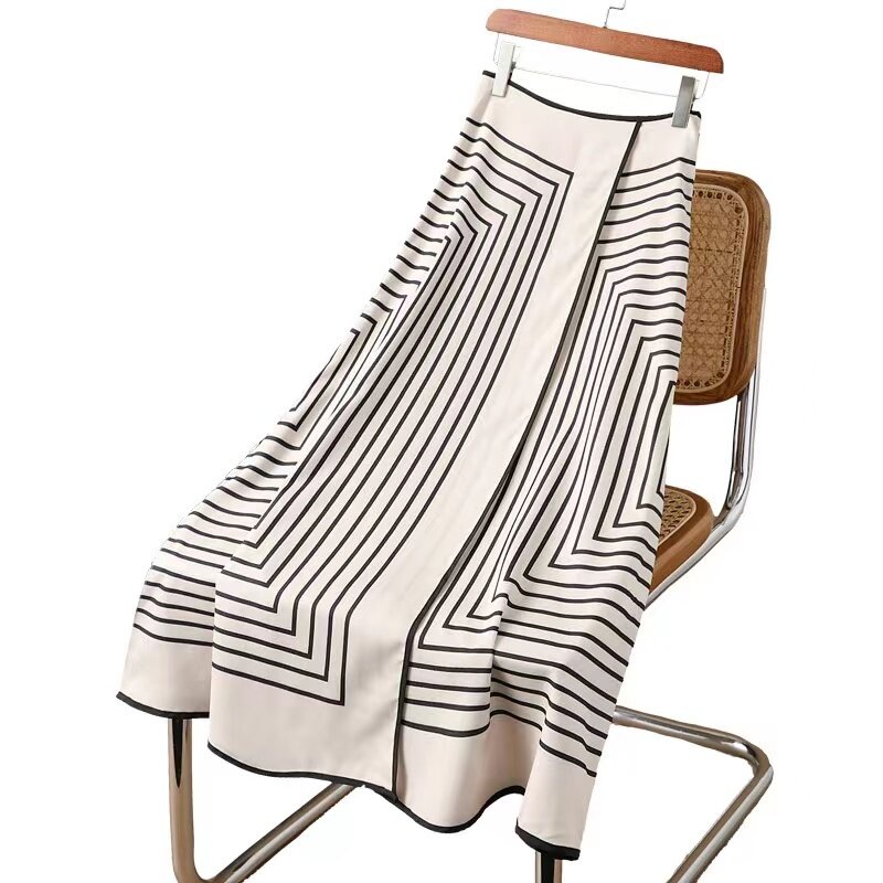 MISUMIXIU High End Hepburn Style Irregular Striped Half Skirt for Women's Summer 2024 New French Light Luxury Temperament Half Skirt