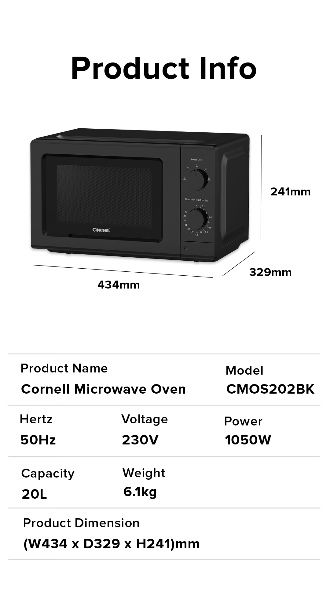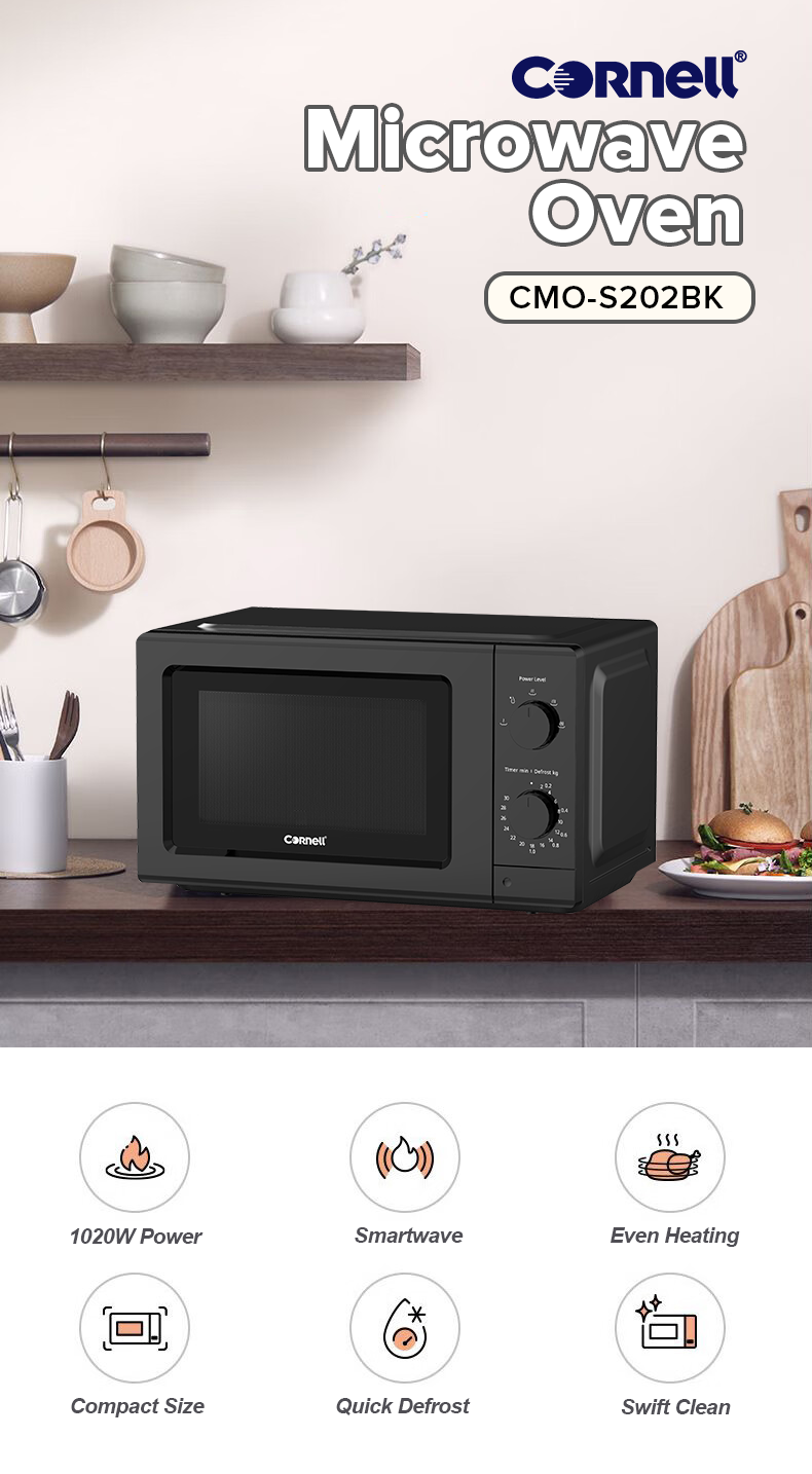 Cornell 20L Microwave Oven in Black or White CMOS202BK Powered by SmartWave