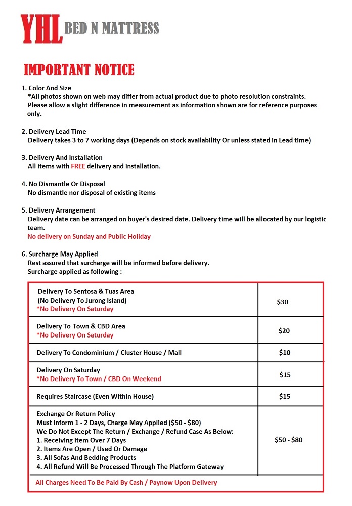 3 Seater Dimension : L183cm x W82cm x H90cm