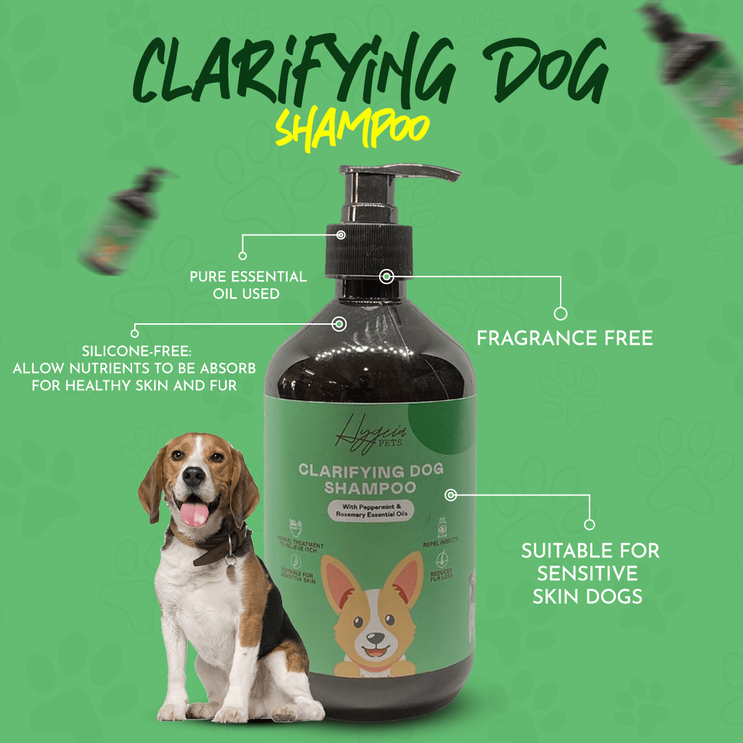 Clarifying dog shampoo uses mild vegetable-based surfactants and high glycerin content to dissolve grime and dirt effectively yet is gentle to skin. A all-in-one fur treatment that deep cleans and moisturises for improved skin with a natural shine. The benefit of peppermint is to reduce itch while rosemary helps to keep away any insects in fur such as ticks.