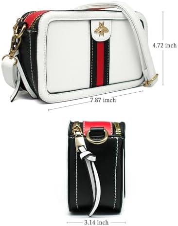 Size: 7.87 * 3.14 * 4.72 inch, bee crossbody bags for women work and everyday use PU Leather Crossbody Bag: make of high quality pu leather,is very durible and easy to clean, little bear pendant is not include Unique design: the camera style, fancy straps, bee design,give you a deep impression, make you shining in the crowd.You can have your make up, phones, wallets and keys and so on in there Detachable and Adjustable Shoulder Straps: There have the blue & red striped ribbon strap and pu leather strap, Offers versatile carrying options, as shoulde bag,crossbody bag or handbag. Guarantee: If this item doesn't meet your expectations, please do not hesitate to inform us, and our service team will provide best solution. For quality problems or defective items, there are full refunds or free #33,409 in Clothing, Shoes & Jewelry ( ) #41 in