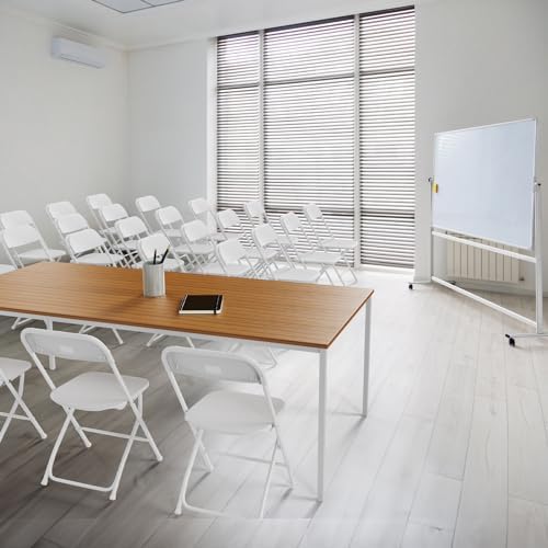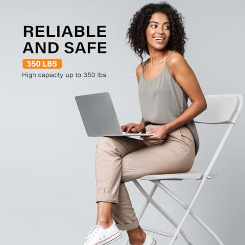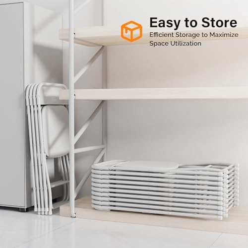 VINGLI 10 Pack White Plastic Folding Chair, Indoor Outdoor Portable Stackable Commercial Seat with Steel Frame 350lb. Capacity for Events Office Wedding Party Picnic Kitchen Dining