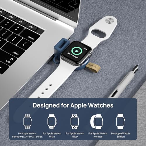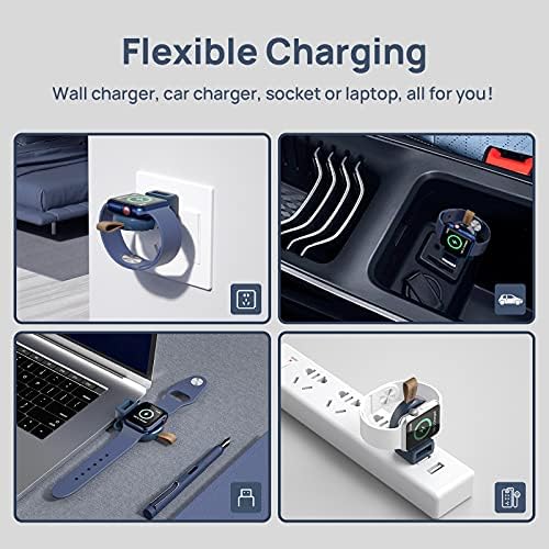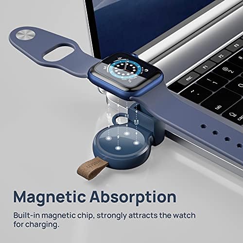 【Cable-Free Design】Does not require an extra cable, eliminating the hassle of cable winding! With the magnetic charging module, this wireless watch charger can charge your watch anytime, anywhere, instead of a long-charging cable or an oversized base when outdoors or traveling. 【Supports Fast Charging】Charging speed of iWatch charger is as fast as the original,fully charge for watch only in 2-3 hours. Plug this travel charger into the USB port of your computer, your car, your car, socket, or power bank to start charging anywhere. 【8-in-1 Universal Compatibility】Compatible with all 49mm 44mm 42mm 40mm 38mm Apple Watch Ultra Series 8 7/6/5/4/3/2/1/SE (Upgraded version works with all WatchOS, include latest 8.0). Just buy one of our wireless chargers and you can share it with family and friends. 【Multiple Protections】Built-in over current, over voltage, short circuit and over temperature protection, offers you a safe environment for both watch and the watch charger. 【Portable Travel Charger】You can carry this compact portable charger out easier rather than taking long and oversized watch charger stand. This is the perfect choice to Apple Watch users who are traveling, simply bring your lightweight and portable iWatch charger. You can put it in your bag or pocket.