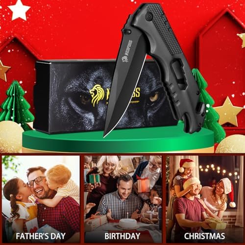 MULTIFUNCTIONAL POCKET KNIFE: 5 IN 1, large blade for cutting, with seatbelt cutter and window glass breaker for accident situations, bottle opener and 4 size wrench. HIGH QUALITY BLADE: NedFoss FA48 pocket knife is made of high quality 8Cr14Mov stainless steel, extra sharp and hardness up to 58HRC. SAFE & QUICK OPEN: Rescue EDC knife has a simple and reliable liner-lock that is resistant to dirt and prevents accidental closing. COMPACT AND HANDY: Easy to store, pocket knives with clip for easy carry, Weight: 8.2oz. Total length 9inch, blade length 4inch. Thickness: 3.3mm MULTIPURPOSE FOLDING KNIFE: Whether DIY work, rescue knife in the car, outdoor hunting, camping, NedFoss FA48 survival knife is your ideal companion for all activities and situations.