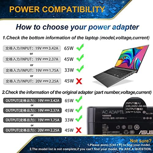 65W 45W 33W Charger for Asus Laptop Charger VivoBook ZenBook Chromebook x551m x540s c202s Laptop Notebook Replacement Power Supply Adapter (See More Models as Listed)