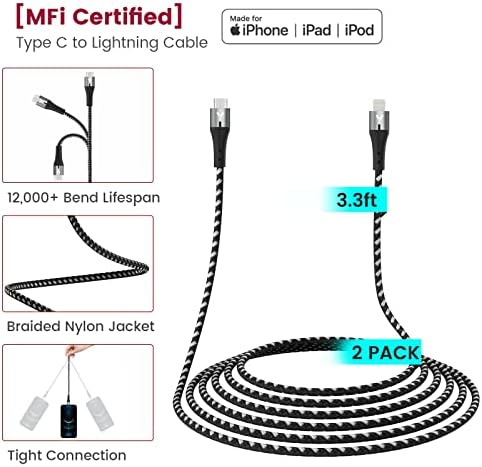 iPhone 13 14 12 Fast Charger Kit, VELOGK 20W USB C PD Wall/Car Charger Adapter for iPhone 14/13/12/Pro/Max/Mini/11/Xs Max/XR/X, iPad Pro/Air, with 2X【Apple MFi Certified】iPhone Lightning Cables(3.3ft)