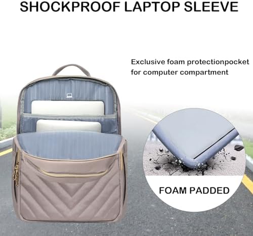 VANKEAN 15.6 Inch Laptop Backpack for Women Work Bag Fashion with USB Port, Waterproof Stylish Travel Bags Casual Daypacks for College, Business, Light Dusty Pink
