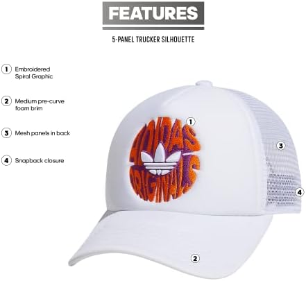 adidas Originals Mixed Graphics Foam Front High Crown Snapback Trucker Hat, White/Bright Orange/Flash Pink, One Size