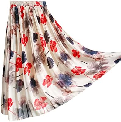 Kingfancy Women's Pleated Skirt Chiffon Elastic Waist A-Line Midi Length Skirt