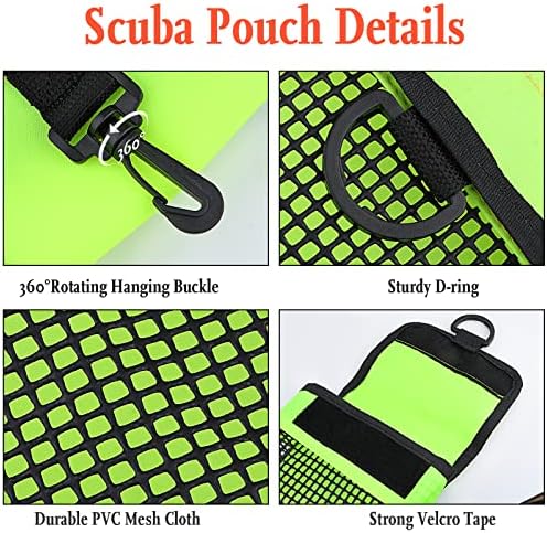 ❤️【MULTIFUNCTION BAG】: Our collection bag is ideal for storing diving SMB, dive reel, divinggloves,also can be used to carry flashlight, compact camera, drift hooks or other underwater equipment accessories. ❤️【PRACTICAL ACCESSORIES】: With these useful mesh bags, you can carry many diving gears easily, and convenient to receive all the small things you carry around every time. ❤️【HIGH QUALITY】: The bag is made of durable 210D coated nylon + PVC mesh cloth materials, designed with mesh holes, easy drain, loop tape fastener closure, easy to use. ❤️【SECURE YOUR GEAR】: The mesh gear pouch has a strong swivel snap and loop closure made for underwater use. Can be attached to a weight belt, BCD harness, or any D-ring. No need to worry about your items falling out. ❤️【EASY TO CARRY】: This mesh bag can be easily folded as a small pack, and is really portable to carry! the storage bag will offer you a lightweight experience on the go, perfect for carrying diving reel/ safety marker tube gears when you go underwater.
