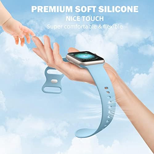 【Compatible Models】 Maledan premium sport watch bands compatible for Apple Watch 38mm 40mm 41mm 42mm 44mm 45mm 49mm, iWatch Series 9, Series 8, Series 7, Series 6, Series 5, Series 4, Series 3, Series 2, Series SE & SE1 & Apple Watch Ultra 2/1. Replacement Bands for All iWatch Series Version 【Soft & Smooth Silicone】 Our iWatch Bands are made of great quality silicone, skin-friendly & very comfortable for workdays, workouts and overnight sleep. Waterproof, lightweight & durable strap, a great affordable option for your Apple watch accessories 【Flexible Buckle & Easy Wear】 Stylish integrated sturdy buckle and strap design, with a silicone loop and peg closure. Compared with the traditional metal buckle, this band design for Apple Watch is much more light & convenient. NO MORE skin irritation 【Multi Colors & Free Size】 Various rich & muted colors, same color clasp and band, go great with your outfits and easy change for every occasion. 38mm/40mm/41mm Band for 5.1"-7.1" (130mm-180mm) wrist; 42mm/44mm/45mm/49mm Band for 5.9" - 7.9" (150mm-200mm) wrist 【Must Buy 38/40/41/42/44/45/49mm Bands Compatible with Apple Watch】 6-pack fashionable & high-quality colorful strap combinations for women men, great versatile bands pack for your iWatch accessories. We highly value your experience and focus on creation. One Year Guarantee & 24/7 Friendly Support from Professional Maledan Team are offered for you #146 in Cell Phones & Accessories ( ) #8 in