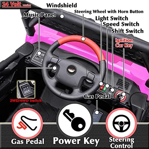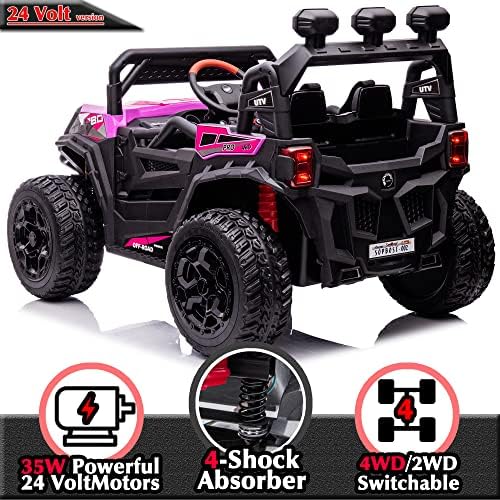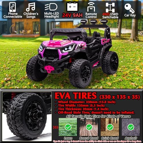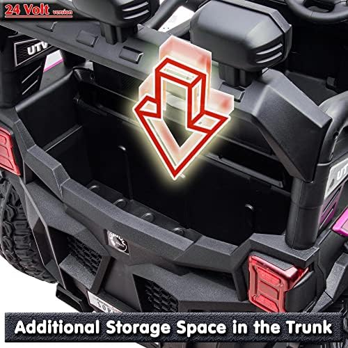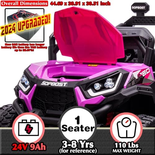 sopbost 24V 9AH Ride On Car for Kids Battery Powered Ride On Toys with Remote Control 4x4 Electric Vehicle 4 Wheeler UTV, EVA Tires Wheels, 5Mph High Speed, Purple Pink