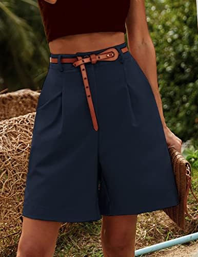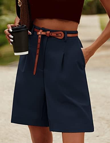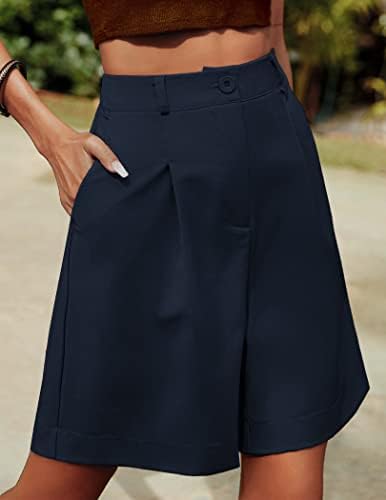 HOTOUCH Shorts for Women Bermuda Shorts Casual Elastic High Waisted Wide Leg Shorts Knee Length Summer Shorts with Pockets