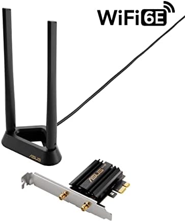 ASUS WiFi 6E total solution - optimized capabilities and performance All-new 6 GHz band - Less congestion and interference for WiFi connections Latest Bluetooth 5.2 - improved signal range, faster transmit speeds and less interference Ultrafast WiFi 6 & WiFi 6E – 4.6X faster speeds, improved connection efficiency and better network security Reduced dead zones with external antenna - Freestanding transceiver and connecting cable allows easy positioning for the best reception