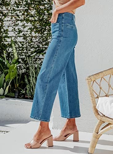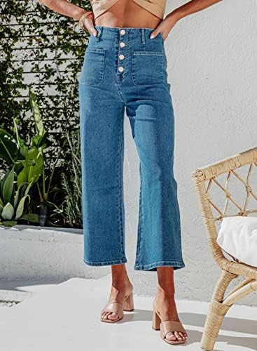 The unique design of wide-leg jeans: High waisted breasted jean makes your waist smaller, and loose, straight legged pants make you more comfortable This is a good pair of boot cut jeans to get your hands on. A good version fits most body types and shows beautiful curves. Pair button-up jeans with a shirt and heels to sit elegantly in the office; Change into a T-shirt and flat shoes and go shopping or for a walk. This is a can 't-miss pair of jeans that are classic, stylish, versatile and easy to clean. Support machine washing, drying clothes, not easy to fade. Please refer to the size measurement in image before ordering. #369 in Clothing, Shoes & Jewelry ( ) #4 in