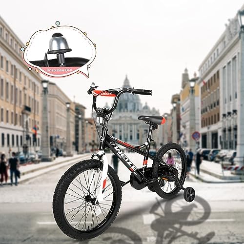 【Size Recommend】: 16" bike for 4-6 years (38" - 48") boys & girls.Note: Measure kid’s INSEAM and compare with SADDLE HEIGHT to check if the rider can touch the ground. 【PERFECT FOR BEGINNERS】: Our bicycle are engineered specifically for a kid's proportions, smaller grips, and lightweight frame create an easier ride and control. 【Protected】: Easy to operate handbrake, which is suitable for small kids who don’t have enough power to control brake by hand. In the meantime,the full coverage chain guard to protect little hands, feet, and clothingand provide a safer pedaling environment. 【Durable Wheels & Sturdy Frame】: Made of premium high carbon Steel to survive the bumps of learning. Anti-slip tires and detachable training wheels ensure steadiness and are helpful for beginners to practice balance. 【EASY TO INSTALL】: The children bike comes with 85% Pre-assembled body and the basic assembly tools.You can watch the assembly video on our page first before splicing bicycles.