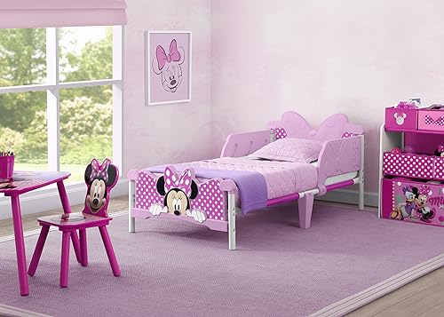 AGE RANGE: Recommended for ages 15 months+ | Holds up to 50 lbs. FUN CHARACTER DESIGN: Colorful decals and 3D accents at the footboard, headboard and toddler rails makes this a fun bed for your little one KEEPS KIDS SAFE: Bed features two attached guardrails for your child’s safety | JPMA certified to meet or exceed all safety standards set by the CPSC & ASTM DURABLE CONSTRUCTION: Sturdy frame ensures long-lasting use SIZE: 30.25"W x 53.5"D x 23.7"H | Fits standard size crib/toddler mattress (sold separately)