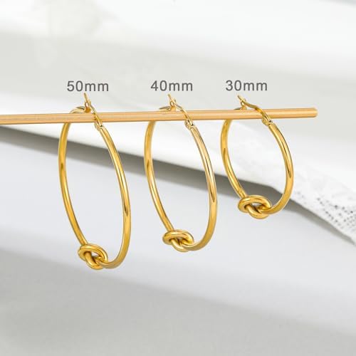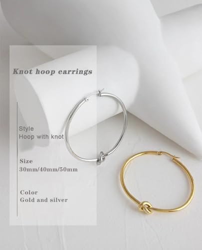 LrioPvy Knot Gold Hoop Earrings for Women Large Gold Knot Hoop Earrings Statement Knot Hoops Hypoallergenic Lightweight Trendy Jewelry Gift 30mm 40mm 50mm,Gold and Silver
