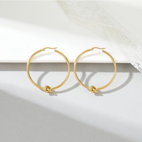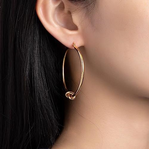 Classical Gold knot Hoop Earrings : 50mm Gold hoop earrings design is stylish and modern yet classic and elegant style. These gold hoops are elegant and simple, making them perfect for both casual and formal occasions.When you’re ready to give your hoop collection a unique update, these stunning knotted gold hoops are the perfect choice Variety of Sizes : Gold knot hoop earrings have a variety sizes available, 30/40/50mm different size, meet your different daily needs.Sturdy secure clasp, easy to put on and take off Hypoallergenic Large Knot Hoop Earrings : 14K gold knot earrings, nickel-free and lead-free for women's sensitive ears,very safe and comfortable to wear everyday, high polished finish hoops, which will keep shining for a long time Perfect Jewelry Gift : This fashion knot Hoop Earring easy to match with most of your outfits,from your daily office attire,to your evening wear,make you look more elegant, suitable for any occasion. Christmas, Thanksgiving, Valentine's day, birthday, anniversary, mother's day and so on,are excellent jewelry gifts for lovers, mothers, friends, sisters, aunts and daughters 90 Days Free Return or Exchange : Please feel free to contact us if you have any question, we will offer you the best solution #202,032 in Clothing, Shoes & Jewelry ( ) #1,281 in